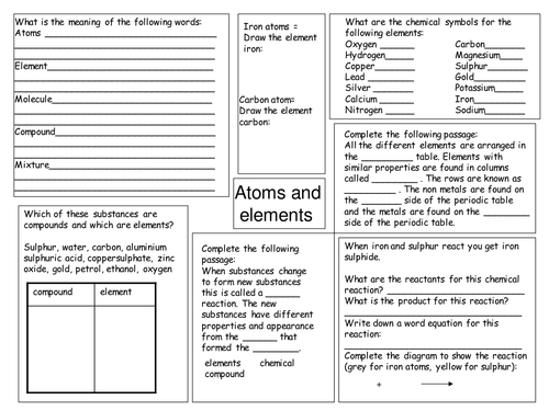 Atoms, Elements and Compounds [Worksheet] Teaching Resources