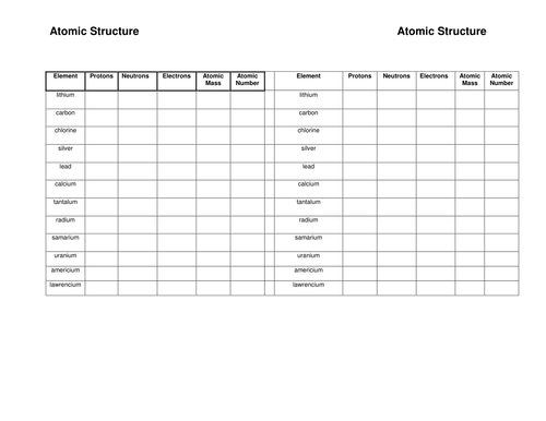 Atoms And Elements Worksheet Tes