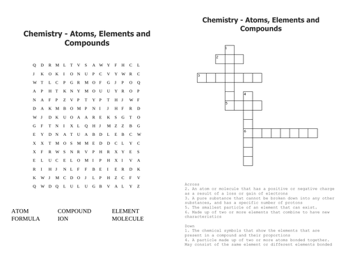 Atoms Elements Compounds Wordsearch & Crossword