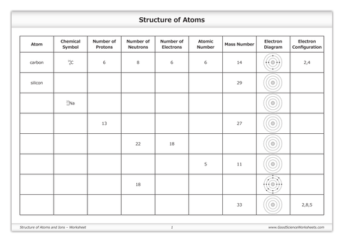 Structure of Atoms and Ions [Worksheet] Teaching Resources