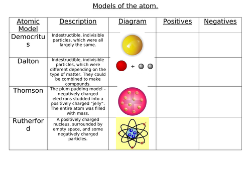 Model of the atom worksheet Teaching Resources